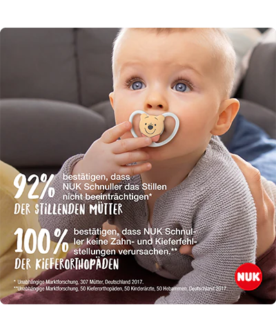 El chupo NUK Disney Winnie Puuh Space tiene una forma adecuada para la mandíbula, viene en un paquete de 2 unidades, en colores gris y blanco. El alegre Winnie Puuh y sus amigos adornan esta colección con diseños que calientan el corazón. Este chupo permite que la piel delicada del bebé respire, evitando irritaciones. Su diseño único no solo es suave para la piel, sino que también es atractivo. Además, el chupo tiene la forma original de NUK, que imita la madre al amamantar, promoviendo un desarrollo oral saludable. Es aceptado por el 95% de los bebés y no causa confusión al succionar. Viene en una caja reutilizable, ideal para mantenerlo limpio y protegido, especialmente cuando estás fuera de casa. Todos los chupos NUK son fabricados en Alemania, son libres de BPA y cumplen con la norma de seguridad europea EN1400.