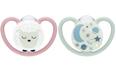 Chupos NUK Space Night de silicona, con forma adecuada para la mandíbula, 2 unidades. Los chupos NUK con efecto de luz ayudan a tu bebé a encontrar fácilmente el camino al sueño. Gracias a un material luminoso seguro para bebés, brillan suavemente en la oscuridad, lo que permite encontrarlos rápidamente durante la noche. El chupo NUK Space permite que la piel delicada del bebé respire. La piel de los bebés es suave y sensible. Aunque tu bebé adore su chupo, la saliva puede irritar la piel al succionar. Por eso, hemos diseñado el chupo NUK Space para que la piel tenga aire y espacio para respirar. Un efecto que el 98% de las mamás confirman. Gracias a su diseño único, el chupo Space no solo es amable con la piel, sino que también tiene un aspecto genial, ahora con muchos nuevos motivos. Por supuesto, el chupón del chupo NUK Space tiene la forma original de NUK, que imita el pecho materno al amamantar. Así, los chupos NUK promueven un desarrollo oral saludable, son aceptados por el 95% de los bebés y no causan confusión de succión. El chupón es tan plano, delgado y estrecho que se adapta perfectamente a la boquita del bebé, dejando suficiente espacio para el movimiento natural de succión de la lengua y la mandíbula. Una realidad que confirman parteras, pediatras y ortodoncistas, así como mamás. La forma anatómica correcta de NUK es ideal, ya que succionar de manera natural no solo sirve para alimentarse, sino que también ayuda a desarrollar habilidades importantes como tragar, masticar y, finalmente, hablar. Por amor a la sostenibilidad: Chupos NUK con empaque reutilizable. La sostenibilidad es muy importante para nosotros. Queremos que los padres puedan reutilizar nuestro empaque después de abrirlo, en lugar de desecharlo. Cada chupo NUK viene en una caja resistente y reutilizable, que mantiene el chupo limpio y protegido, siendo una solución ideal para llevar y proteger el compañero favorito de tu bebé de la suciedad y la humedad. Los chupos NUK se fabrican al 100% en Alemania y cumplen con la norma de seguridad europea EN1400. Por razones de seguridad e higiene, los chupos de silicona deben ser reemplazados cada uno o dos meses.